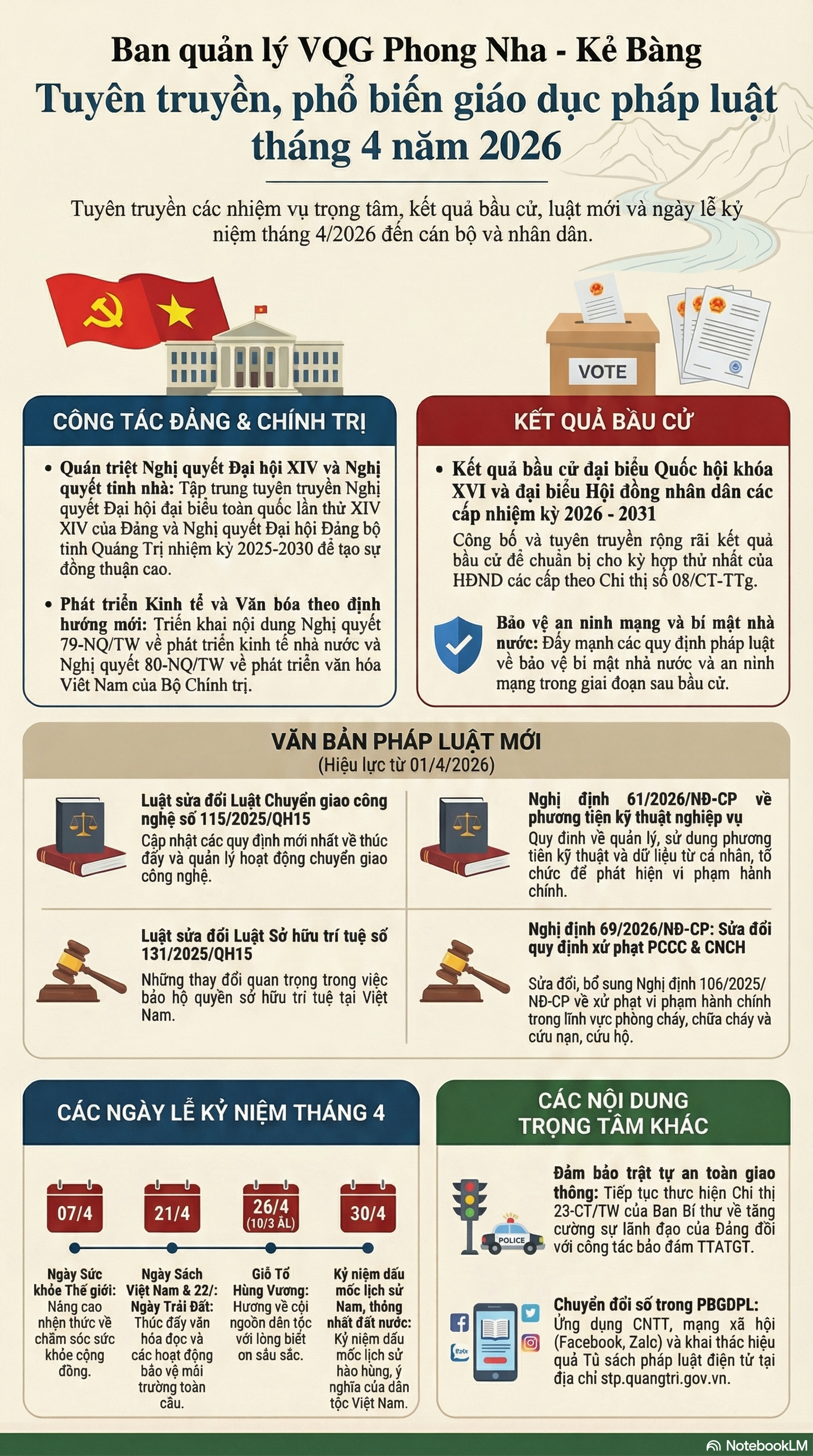 Ban Quản lý VQG Phong Nha – Kẻ Bàng tuyên truyền, phổ biến giáo dục pháp luật tháng 4 năm 2026